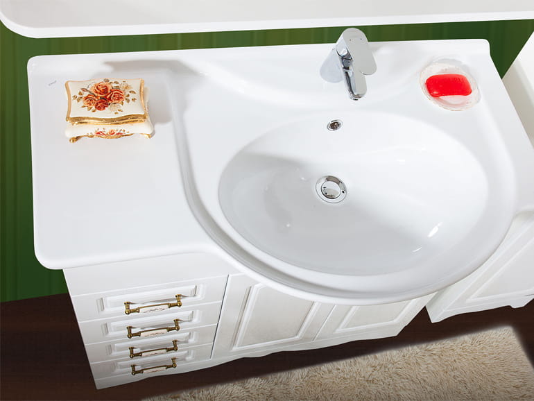 Предпочитаете планировать обстановку самостоятельно? Выбирайте тумбу с раковиной, зеркало и пенал. Интересно, что во многих моделях есть корзина для белья. Зеркала – чаще всего немецкого производства. Много вариантов с подсветкой. Встречаются и оригинальные решения. Например, подсветка в виде солнечного круга.