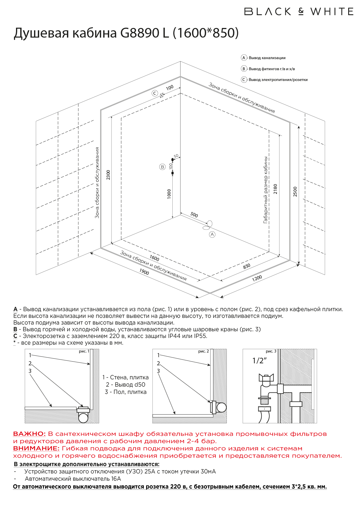 Душевая кабина Black & White Galaxy G8890 160х85х220