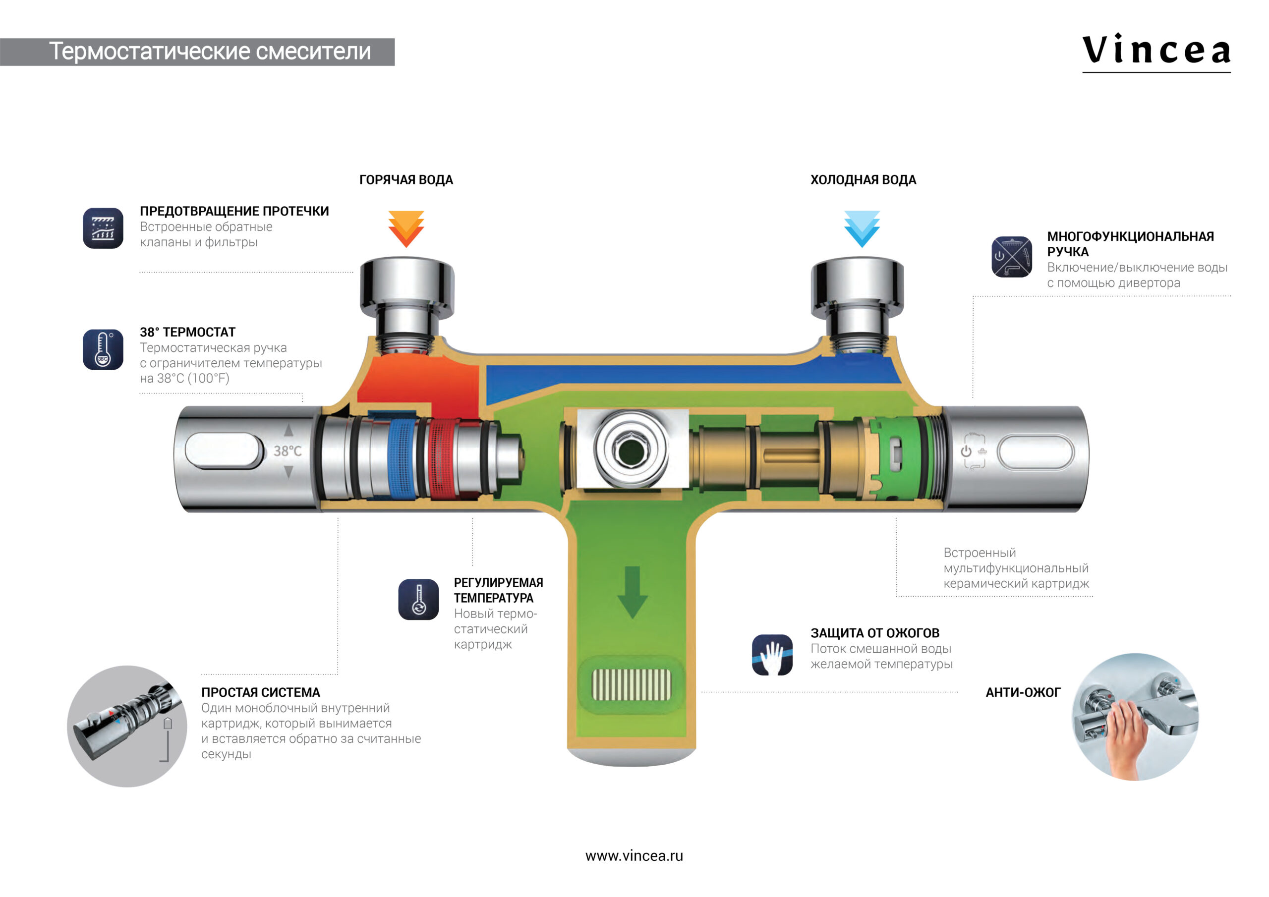 Вентиль позволяет регулировать поток воды: изменять мощность и температуру.