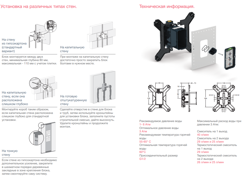 Монтаж на стену - тип установки душевых панелей и стоек.